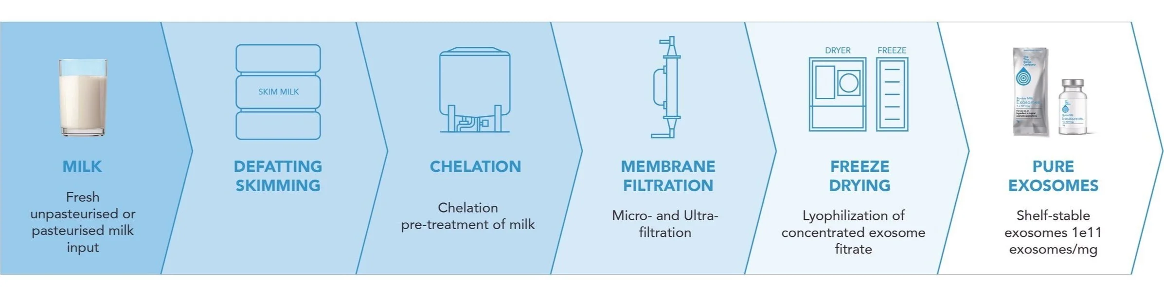 We are a global leader in milk exosome manufacturing (isolation), functional application into products, and the loading of exosomes with therapeutic cargoes.